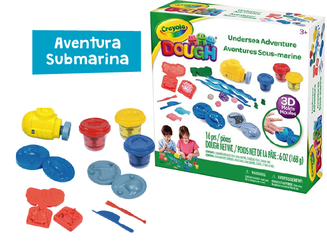 Incluye 1 Juguete (Submarino o Tanque), 3 Potes de Masa (168 gr.), Moldes 3D y herramientas para modelar.