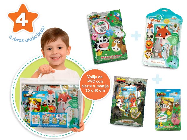 Incluye los siguientes juegos en una valija de pvc con cierre y manija:- Había una vez. - De dragones y dinos. - Picnic encantado. - El árbol de los deseos.