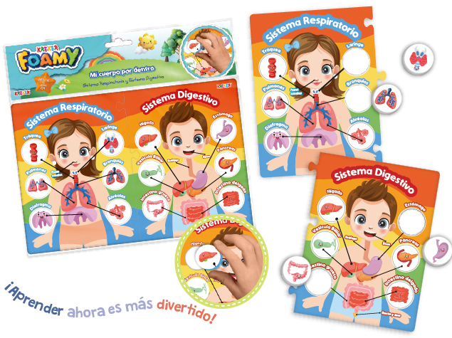 2 encastres de goma Eva sobre el sistema respiratorio y digestivo.