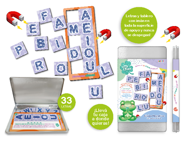 ncluye 1 tablero de juego, 33 letras imantadas, y 1 estuche metálico para guardarlas y llevarlas a todos lados!