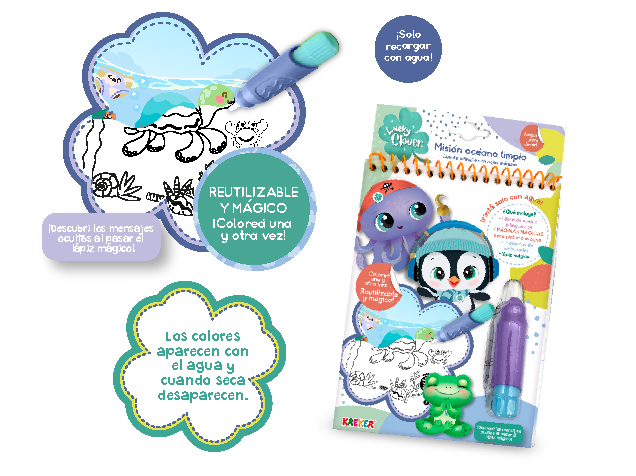 Incluye 1 libro con páginas mágicas para pintar con agua, actividades y lápiz mágico.